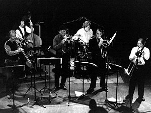 spectacle unique en son genre Formé de 4 à 8 trombonistes, TROMBONE SUMMIT présente un spectacle unique en son genre. Cette réunion peu ordinaire fera découvrir à votre auditoire un des plus beaux instruments qui soit, surnommé à juste titre "le violon des cuivres". Avec des arrangements uniques signés de la main de grands trombonistes tels que : J.J. Johnson, Kay Waiding et Slide Hampton, cet ensemble offre à votre auditoire une sonorité tout à fait différente. Au programme de ce spectacle, un répertoire qui se veut à la fois moderne et accessible à tous. TROMBONE SUMMIT vous propose des pièces musicales de la période du swing et du bebop mettant en évidence des compositeurs connus (Gillespie, Monk, Johnson, Winding, Parker). Votre public pourra ainsi découvrir les plus beaux standards de jazz : Night in Tunisia, Lil Darlin, Scrapple from the apple, etc. interprétés de façon tout à fait différente. Une section rythmique les accompagne (basse, piano et batterie). |